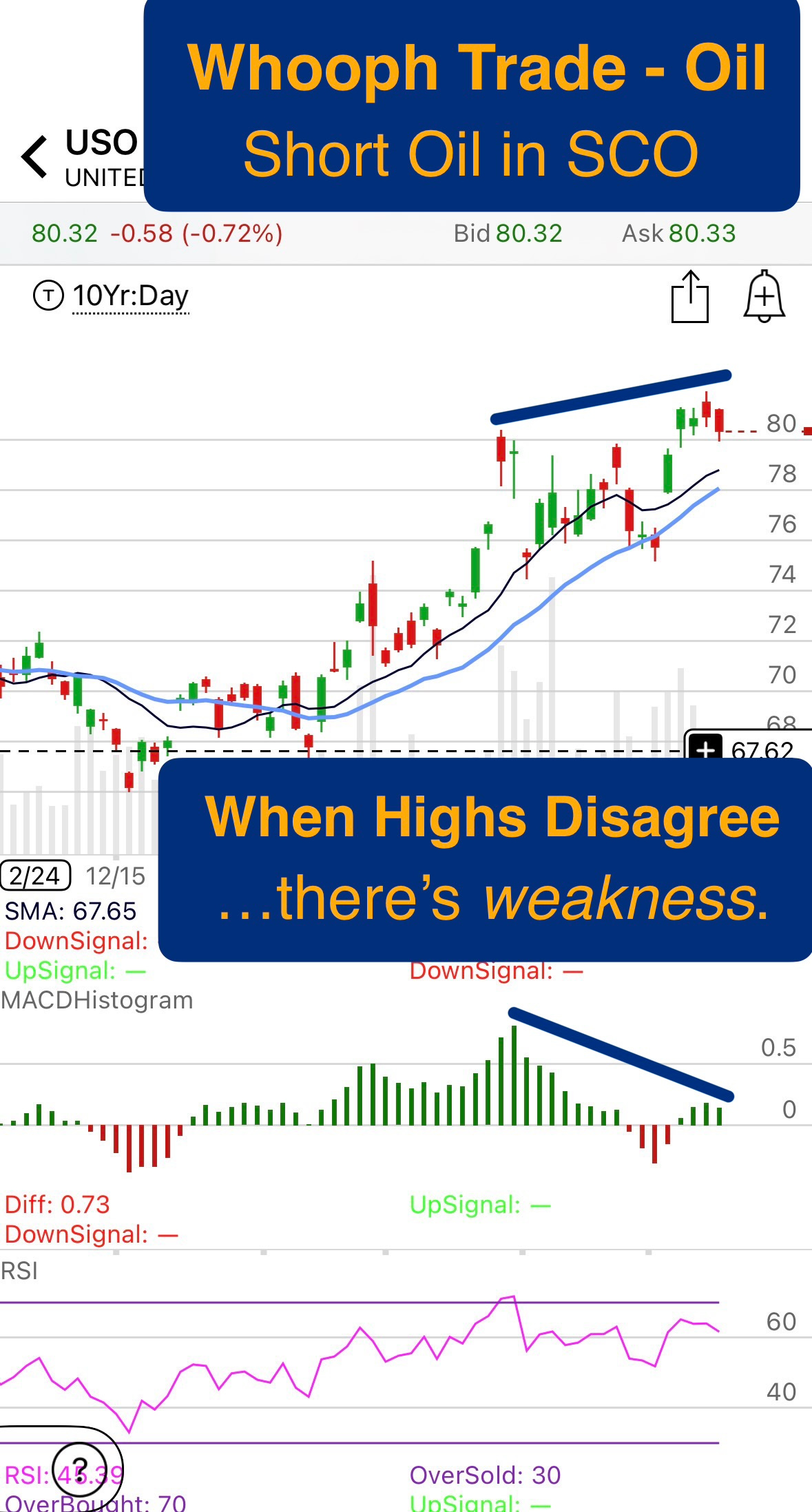 Strong Price-Indicator Disagreement in multiple timeframes appear to be having their affect on Oil Markets. Whooph’s short position placed yesterday.
