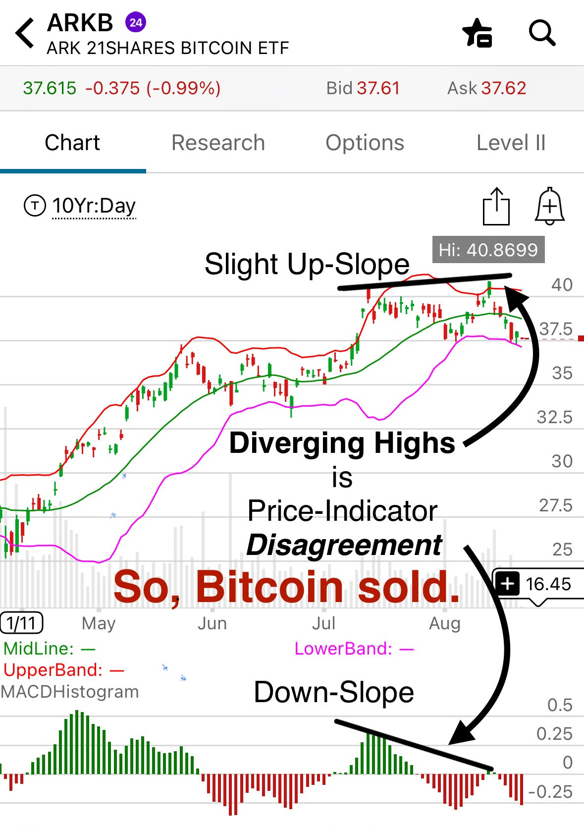Upon that disagreement, which by the way, traders see, trade algorithms see, and fund managers know, the darned thing mysteriously SELLS.